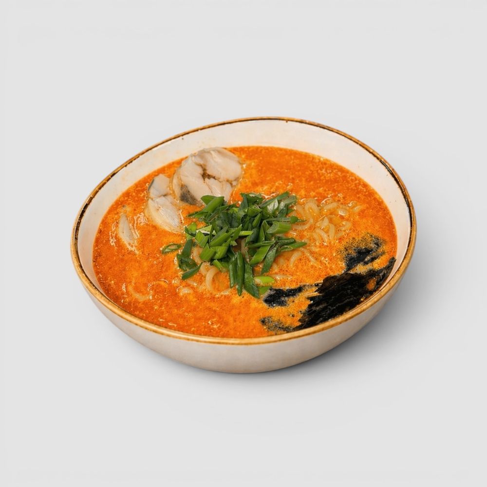 Сырный рамен на сливочном бульоне с тремя сырами, куриным рулетом, яйцом и пикантной пастой лаучанма